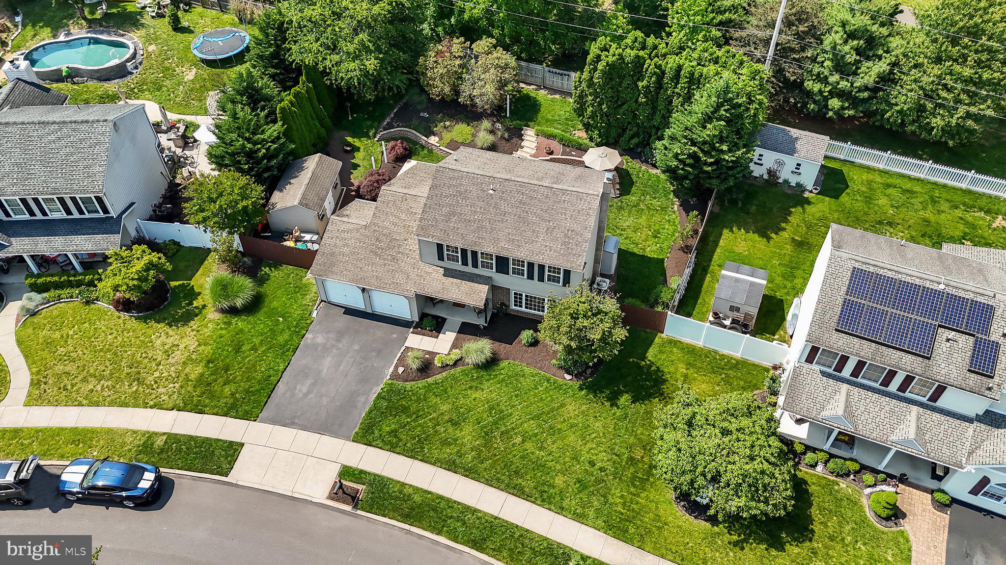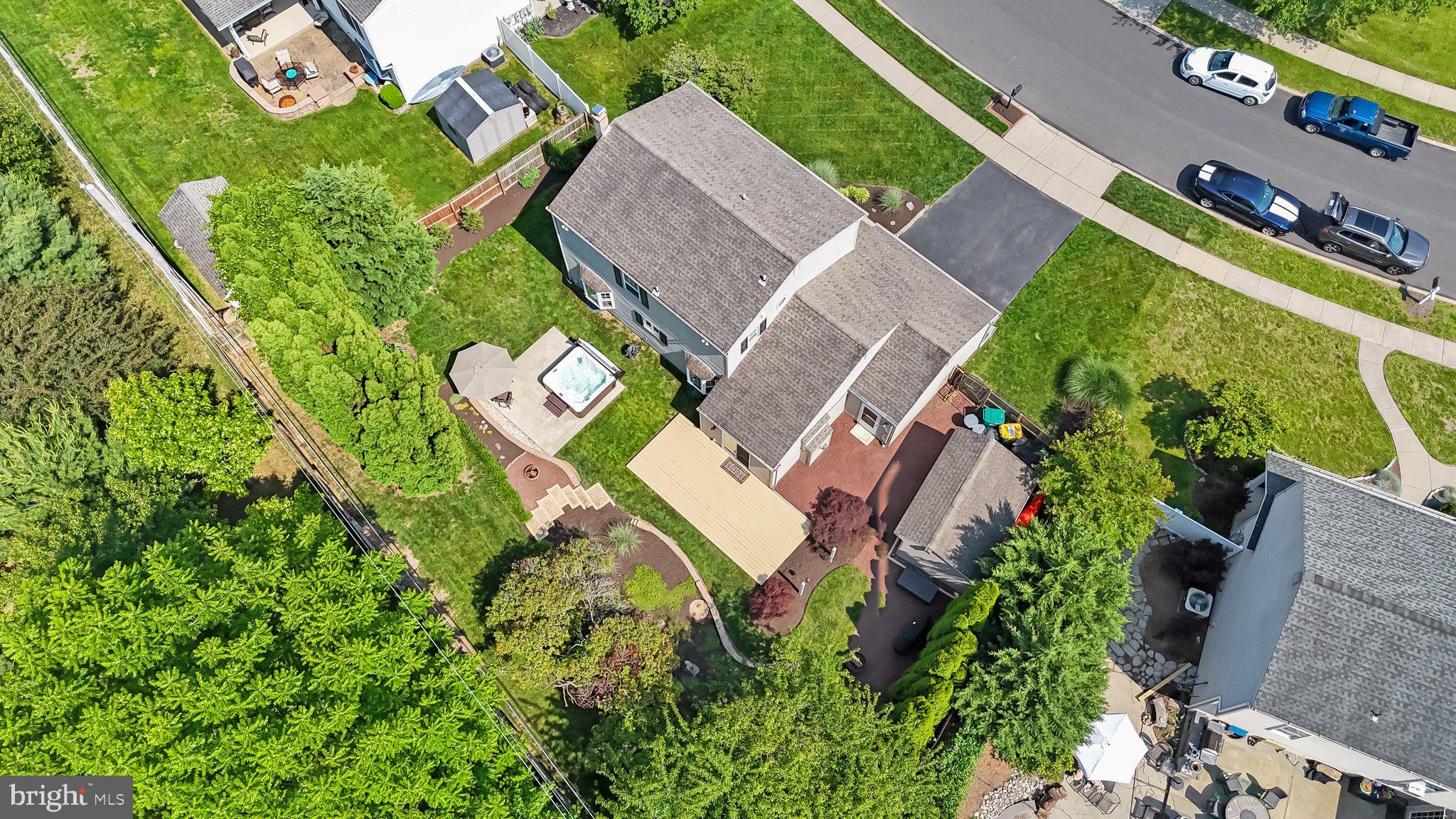 Welcome to 222 Hampton Drive, a lovingly maintained and move-in ready home in Neshaminy School District with students attending the brand-new Core Creek Elementary School! As you enter the home you will be greeted by beautiful hardwood floors that flow throughout the main floor. Your journey through the home will start in the spacious living room with large windows, which provide plenty of natural light, and leads to the formal dining room, conveniently located adjacent to the kitchen. The eat-in kitchen has much to love with timeless maple cabinets, stainless appliances, including gas stove, and view of the family room. The cozy family room will surely become your favorite hangout space with gas fireplace, Travertine tile floors and access to the backyard. Stepping outside, you will find yourself a private and beautifully landscaped oasis. The fully fenced back yard has gate access to a paved & lighted walking trail that runs behind the house and to Core Creek Park, perfect for anyone working on their daily step goal or that just loves every opportunity to enjoy the outdoors. After your walk, take advantage of the luxurious hot tub with lighting, waterfall and Bluetooth speakers to allow for even more enjoyment of this serene setting. Also included with the home is a 10x16 shed with electric hook up and lighted workbench. Completing the main floor is a half bath and access to the 2-car garage with pull-down stairs leading to an attic storage space. The upper level is home to 3 spacious bedrooms and an upgraded full bath. The large primary bedroom features a walk-in closet (with potential to be converted into an additional bathroom) and private access to the bathroom. Not to be missed is the unfinished basement which provides ample storage space now or has the potential for endless possibilities for your future touches. Of note: upgraded, energy efficient insulation under siding as well as seller providing 1 year buyer home warranty.